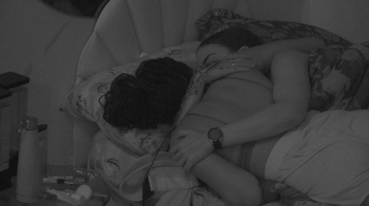 Depois de se desentender com Gabriel Santana e Marvvila, Sarah Aline vai se deitar no Quarto Fundo do Mar acompanhada do ator. Na cama de casal do cômodo, ela chora e é amparada por ele, que se deita ao seu lado.
